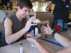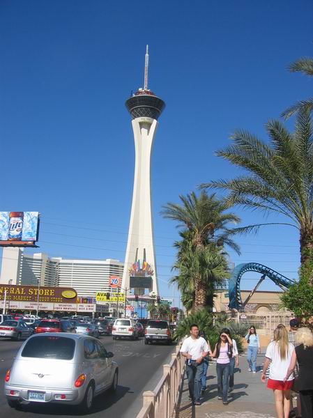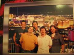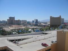 Insgesamt war unser Las Vegas Aufenthalt eher anstrengend als entspannend. Ich hatte mir eigentlich überlegt, dass ich dort ein wenig relaxen könnte, aber daraus wurde irgendwie nichts. Wir und die Österreicher haben in unserem Hotel Sahara praktischerweise zwei Zimmer mit Verbindungstür bekommmen (also auch zwei Telefonleitungen, so dass Corey und ich gleichzeitig ins Internet gehen konnten *g*). Auf unsere Einladung hin, sind Bond, sein Freund Den, Heather und noch eine Freundin, Patty, von Freitag bis Sonntag zu uns ins Hotelzimmer gekommen. War nen bissel eng mit sechs Leuten auf einem zwei-Doppelbetten-Zimmer, aber irgendwie auch gemütlich. Corey wollte unbedingt in die gerühmt berüchtigte Disko Studio 54, die im MGM Grand beheimatet ist, aber als wir die Schlange davor gesehen haben, sind wir doch erst wieder geflüchtet. Schließlich sind wir im Coyote Ugly im New York, New York gelandet, mussten allerdings feststellen, dass es dort nicht wirklich schön ist. Erstens war es total überfüllt und zweitens waren die meisten Mädels auf der Bar nicht unbedingt eine Augenweide. Ich hatte irgendwann keine Lust mehr und habe beschlossen, zu unserem Hotel zurückzulaufen. War nicht gerade eine geniale Idee. Hab ich erwähnt, dass das New York, New York und das Sahara an entgegengesetzten Enden des Strips sind? Das New York, New York liegt im Süden gleich gegenüber vom MGM Grand und das Sahara steht am anderen Ende schräg gegenüber vom Stratosphere Tower. Ich war eine Stunde unterwegs, aber immerhin konnte ich mir den Strip noch mal genau ansehen... Die Österreicher und Corey haben es noch am selben Abend gewagt und sich ganze 45 Minuten am Studio 54 angestellt, nur um dann nicht reingelassen zu werden, weil Markus angeblich Turnschuhe an hatte. Von da an war mir der Club schon aus Prinzip unsymphatisch.