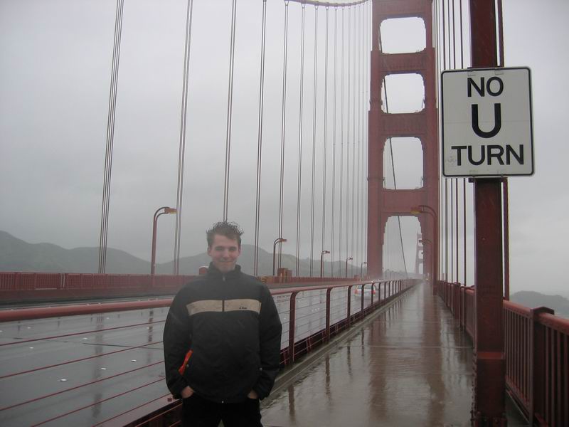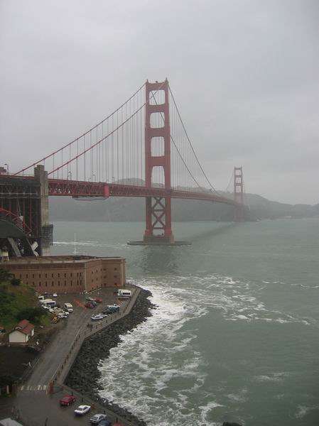 Der Donnerstag hat auch nicht gerade etwas zum posiviten Image beigetragen. Mittags find es an zu regnen und hörte den ganzen Tag nicht mehr auf. Wir wollten uns eigentlich den Golden Gate Park angucken, aber das macht bei Regen wirklich keinen Spaß. Deshalb sind wir direkt zur Golden Gate Bridge übergegangen und da wir diese berühmte Brücke unbedingt sehen wollten, sind wir pitschnass geworden. Zudem war es auch noch ziemlich kalt und windig. Das Cable Car wollten wir natürlich auch nicht verpassen und so ging es zum Schluss noch einmal quer durch die Stadt und dann mit dem Cable Car längs runter bis zur Market Street. Irgendwann waren wir schließlich wieder im Youth Hostel und dort bin ich dann auch geblieben. Die anderen haben die Hoffnung nicht aufgegeben und sich noch ne Weile ins Nachtleben gestürzt.